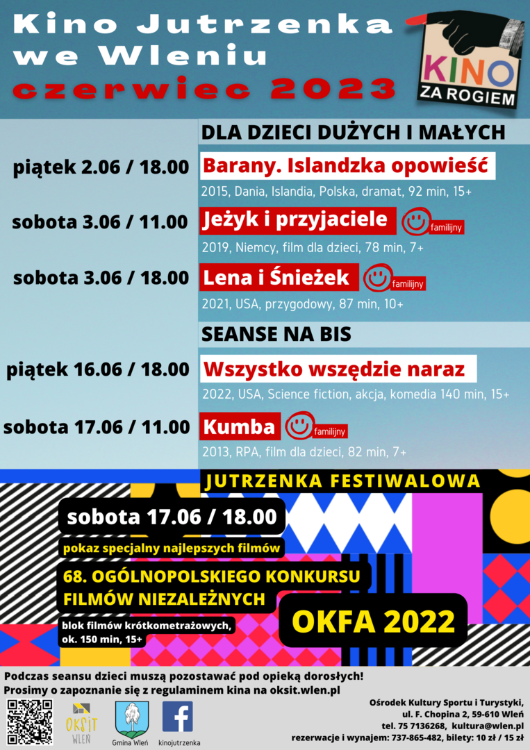 Ceny biletów na pojedyncze seanse to 15 zł (kino wieczorne) i 10 zł (familijne poranki filmowe).