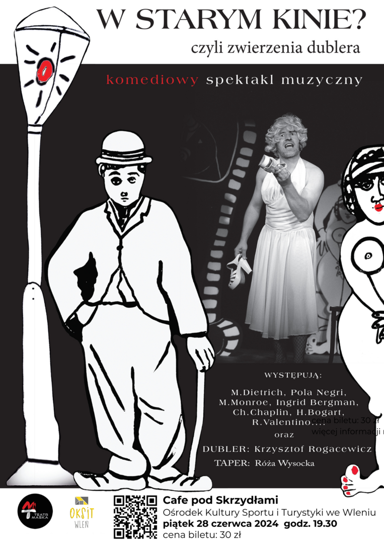 Po wernisażu przeniesiemy się do Cafe pod Skrzydłami w sali widowiskowej OKSiT, gdzie o godz. 19.30 w kawiarnianej atmosferze obejrzeć będzie można komediowy spektakl muzyczny „W starym kinie?... czyli zwierzenia Dublera?” w wykonaniu artystów Teatru Maska.