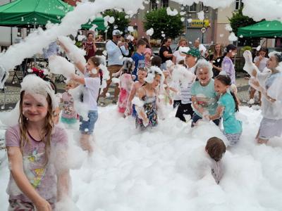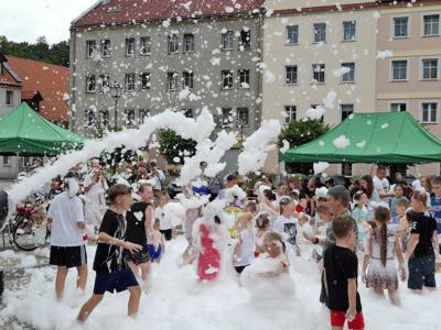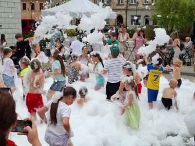 Zabawę rozpoczęliśmy od powszechnie lubianej przez dzieci piana party, która dostarczyła wiele emocji i dobrej energii. Serwowana przez nas piana nie szczypie w oczy, jest hipoalergiczna i nie uczula. Zabawa z pianą zapewniła firma FUN and ART z Wlenia.