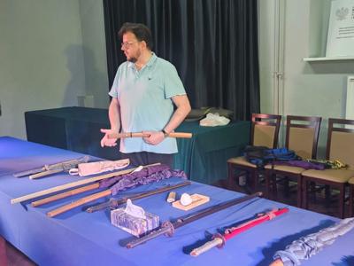 Szczególny gość piątkowego wieczoru Hiroshi Kojima – rodowity mieszkaniec Japonii oraz licencjonowany kowal Ministerstwa Kultury Cesarstwa Japońskiego opowiedział jak powstaje japońskie ostrze oraz jakie są etapy jego produkcji. Tradycja wytwarzania miecza japońskiego sięga czasów średniowiecza a licencjonowany kowal, może wykonać jedynie dwa egzemplarze w miesiącu.