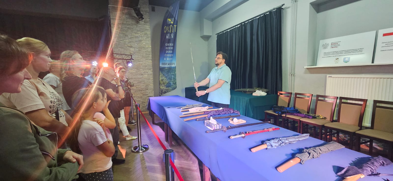 W piątek 19 września w Ośrodku Kultury Sportu i Turystyki we Wleniu odbyło się nietuzinkowe, wręcz egzotyczne wydarzenie. W trakcie kilkugodzinnego spotkania zebrani mieli okazję obejrzeć unikatową wystawę mieczy japońskich. Powstanie niektórych z zaprezentowanych egzemplarzy jest datowane nawet na XIII oraz XIV w. Wydarzeniu towarzyszyły prelekcje przybyłych gości nt.: miecza w japońskiej kulturze oraz technik i sposobów jego wytwarzania. Wieczór zwieńczył pokaz wschodnich sztuk walki w wykonaniu członków klubu SHIDOKAN karate z Jeleniej Góry, który we wrześniu br. otworzył sekcję również we Wleniu.