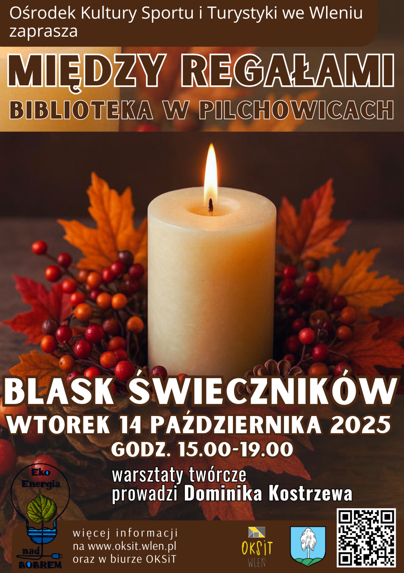 Tym razem przeniesiemy się w wyjątkowy klimat jesieni. Podczas warsztatów będziemy tworzyć jesienne świeczniki – dekoracje, które nie tylko ozdobią dom, ale także wniosą do niego ciepło i przytulną atmosferę. Do pracy wykorzystamy naturalne materiały oraz kolorowe dodatki, a każdy uczestnik będzie mógł stworzyć swój własny, niepowtarzalny projekt. Wystarczy zabrać ze sobą dobry humor i odrobinę wyobraźni – resztą zajmiemy się wspólnie.