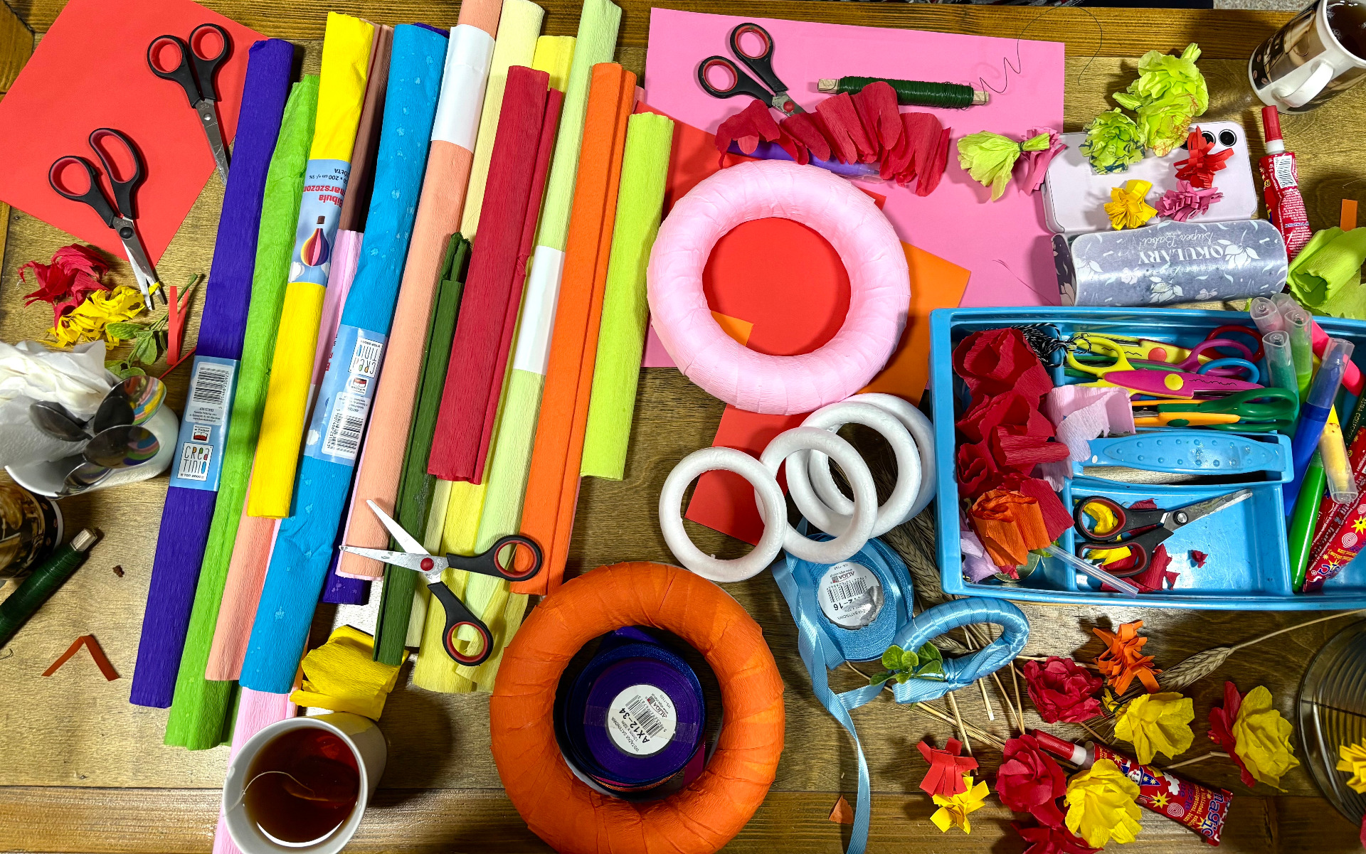 Papierowe wianki, które rozkwitły między regałami biblioteki, są symbolem kreatywności, współpracy i radości ze wspólnego spędzania czasu.
