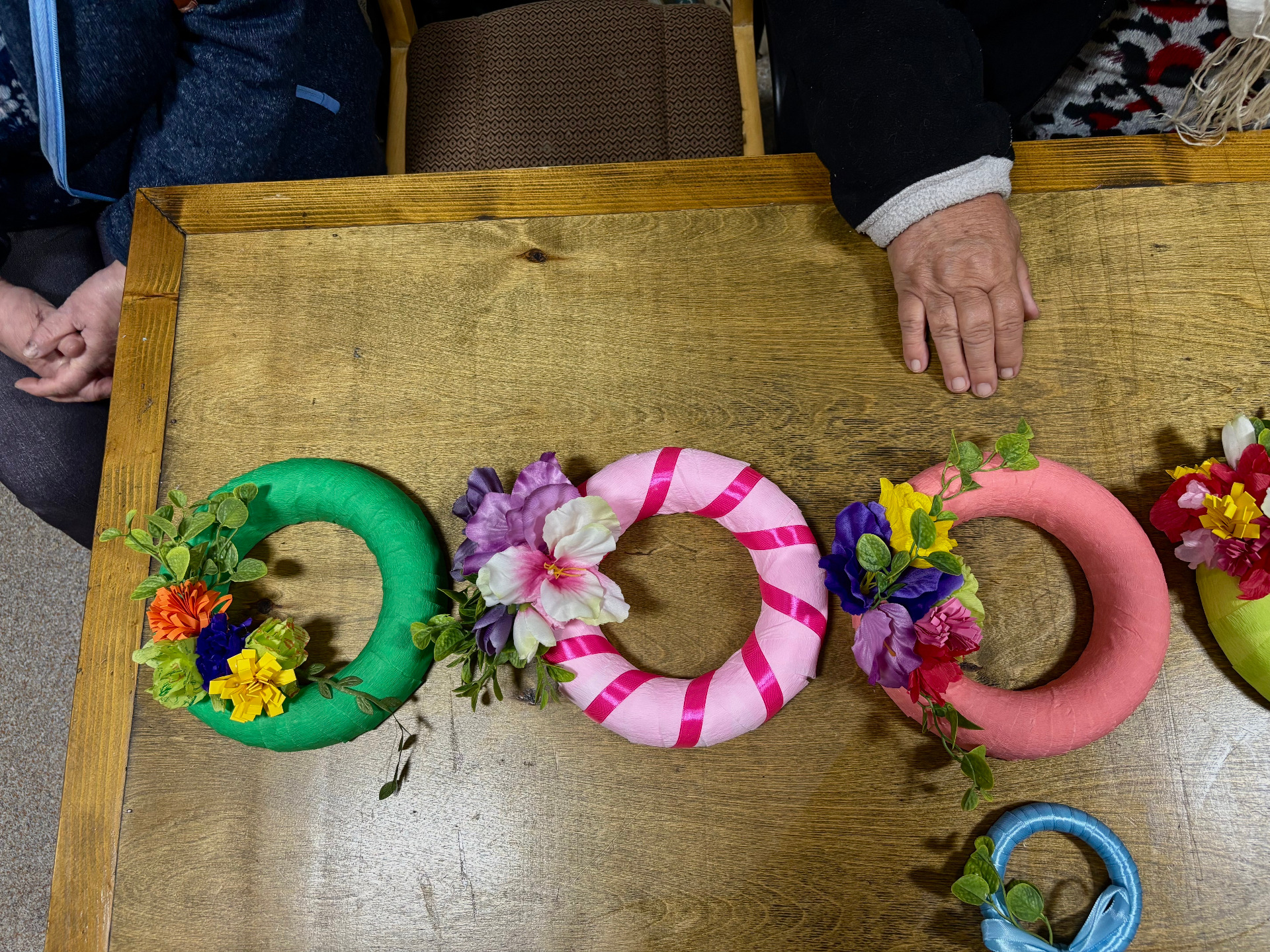 Na stole nie zabrakło również słodkiego akcentu – Panie przyniosły własnoręcznie przygotowane ciasta, które umiliły czas wspólnego tworzenia. Między kolejnymi etapami pracy snuły się rozmowy, śmiech i wymiana pomysłów. Spotkanie stało się nie tylko okazją do rozwijania pasji plastycznych, ale także do budowania wspólnoty i chwili wytchnienia w codzienności.