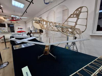 Po wejściu do pomieszczenia uwagę zwiedzającego przykuwa szkielet modelu samolotu Piper, którego pokaźne rozmiary spowodowały, że skrzydła zostały wyeksponowane oddzielnie. Pod sufitem zawieszono też modele polskich i międzynarodowych produkcji tj.: "Wicherka", "Cri-Cri" oraz "Prząśniczki". Model na uwięzi „Skrzat” zawiera wszystkie potrzebne, dodatkowe akcesoria, które pozwalają się mu wzbić w powietrze.