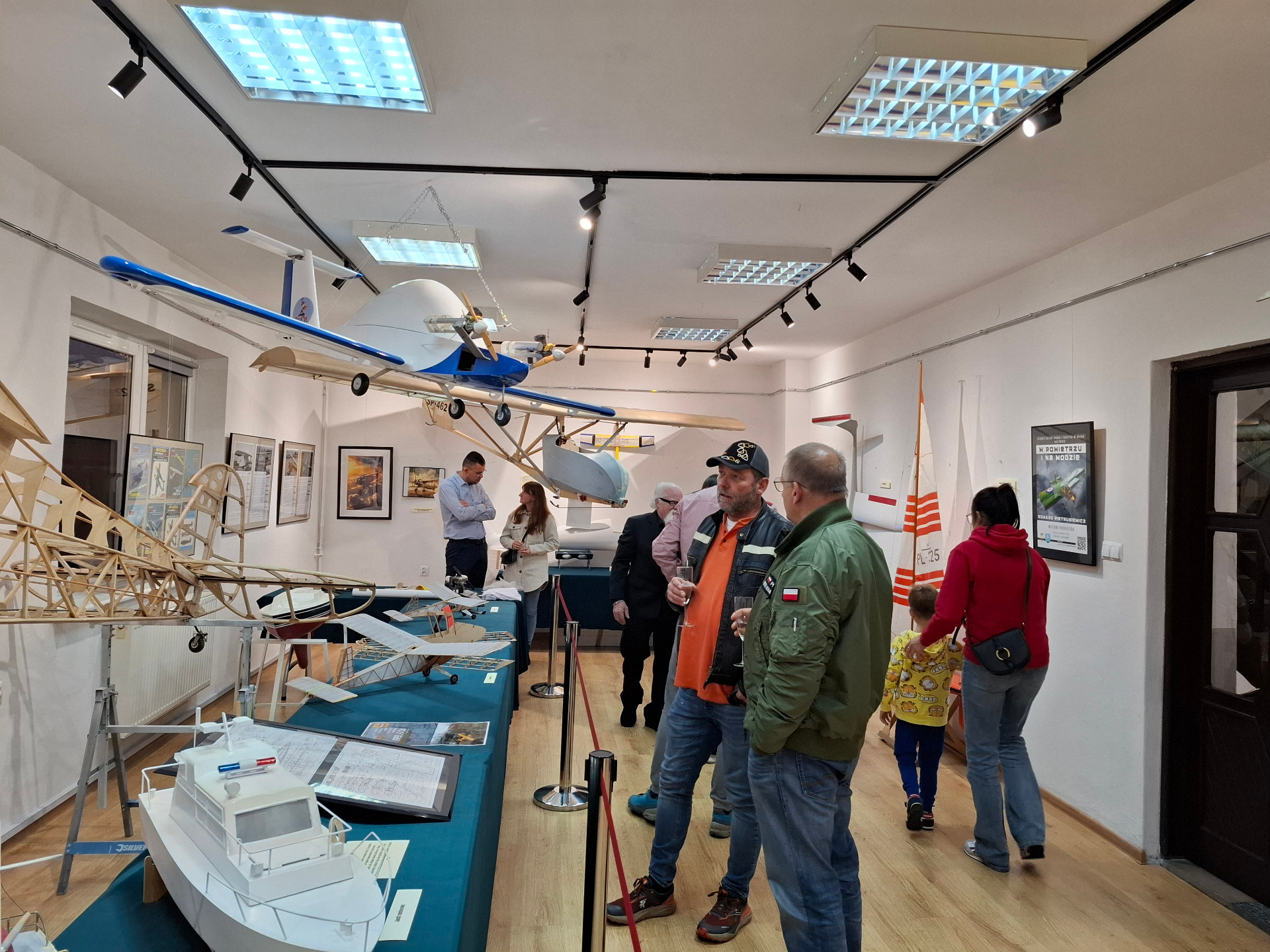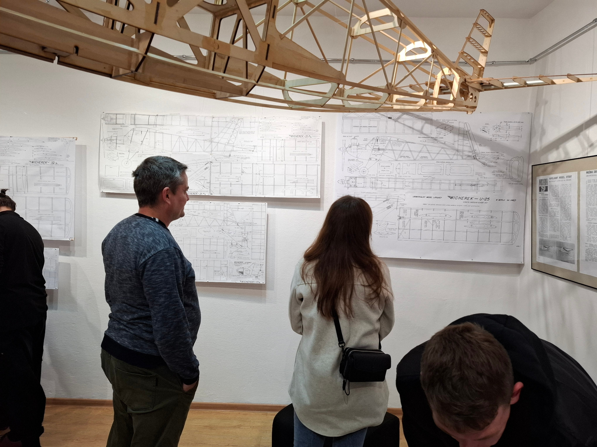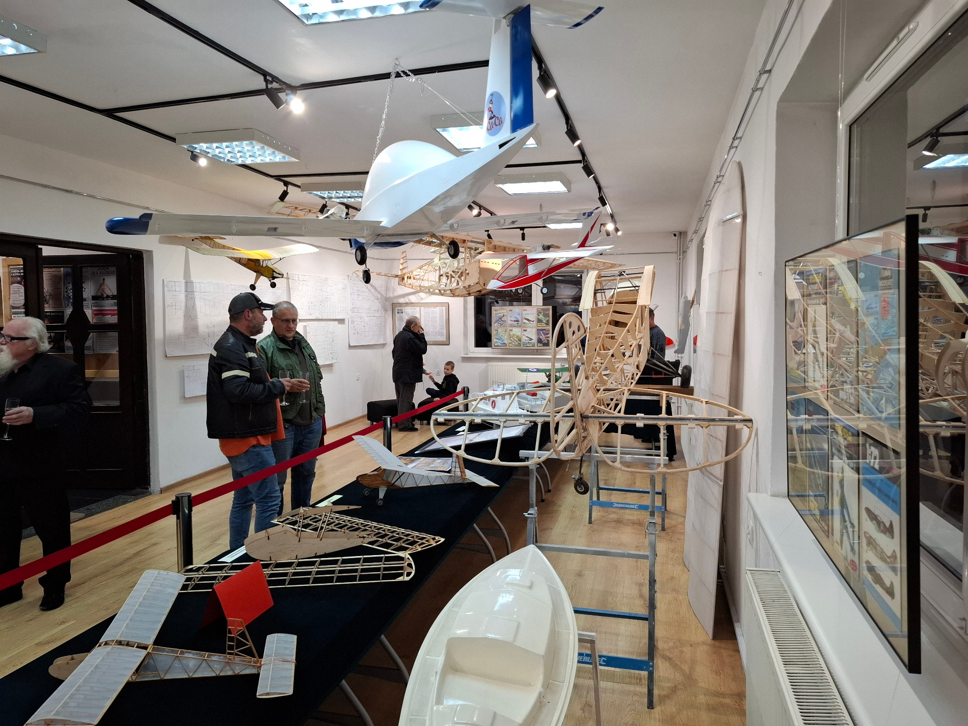 Pomieszczenie galerii wypełniły rysunki montażowe oraz szkice polskich samolotów sportowych i turystycznych. W ramach można obejrzeć wyeksponowane wydawnictwa „Młodego modelarza”, magazynu niegdyś topowego wśród pasjonatów modeli pomniejszonych różnego rodzaju. Ekspozycja prezentuje także mini warsztat modelarza, czyli narzędzi niezbędnych w tej profesji. Balsa, żelazko modelarskie, szyfon, papier japoński to tylko niektóre z nich. Na innym stole zobaczyć można walizkę z odbiornikiem radiowym służącym do utrzymywania łączności z modelem podczas sterowania, silniki napędzające eksponaty czy formy do produkcji skrzydeł i kadłubów.