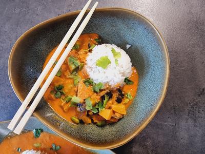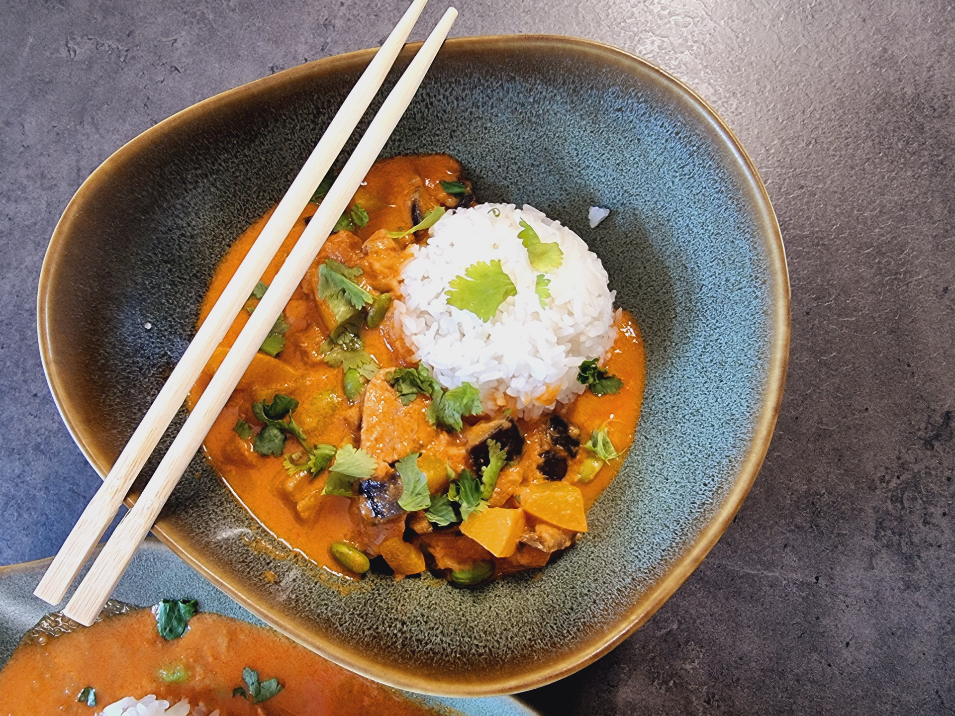 Kolejnym punktem będzie tajskie curry z dynią i polędwiczką wieprzową. Do tego użyjemy aromatycznych dodatków – mleka kokosowego, imbiru czy czosnku. Danie świetnie smakuje z kolendrą, bazylią i ryżem jaśminowym.