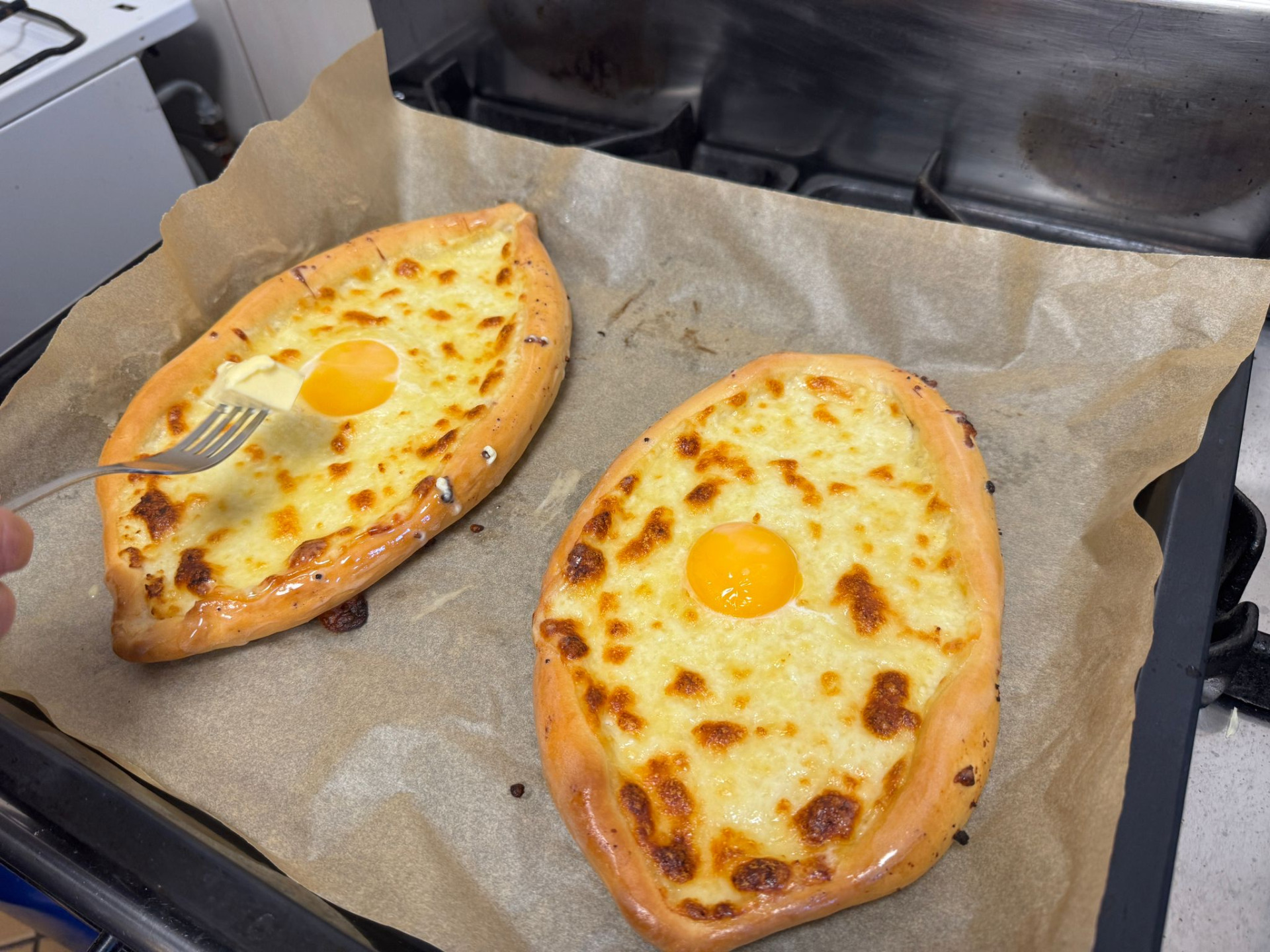 Fot. Gruzińskie chaczapuri to przepyszne i bardzo sycące danie, które szykujemy z ciasta na pizzę z dodatkiem aromatycznych serów i jajka.