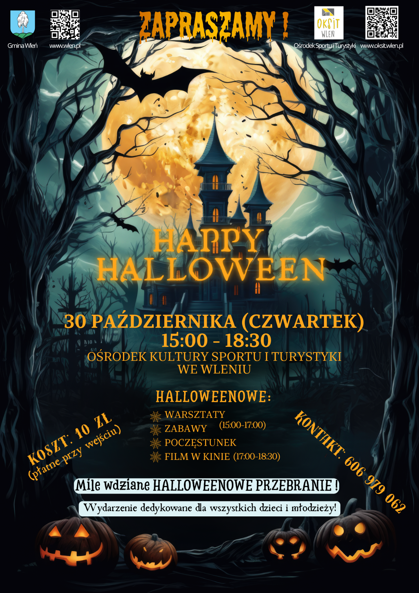 W czwartek 30 października 2025 r. w Ośrodku Kultury Sportu i Turystyki we Wleniu odbyły się twórcze warsztaty, zabawy oraz animacje inspirowane dniem Halloween. Liczba zainteresowanych przerosła nasze oczekiwania, jednak bez względu na to wszyscy uczestnicy świetnie spędzili czas.