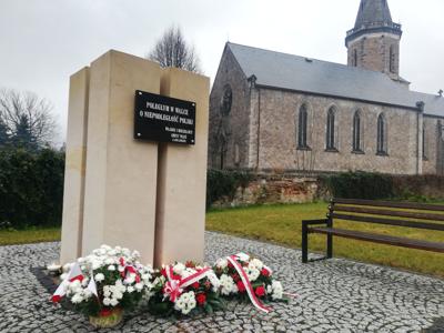 Fot. Kwiaty złożone pod pomnikiem Poległych w walce o Niepodległość Polski.
