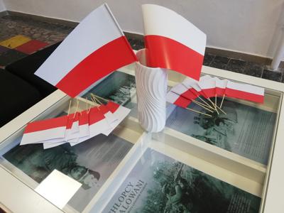 Uczestnikom wydarzeń odbywających się w wleńskim domu kultury rozdawaliśmy polskie flagi, które zostały przygotowane w ramach zajęć plastycznych pracowni Gołębnik Ośrodka Kultury Sportu i Turystyki we Wleniu.