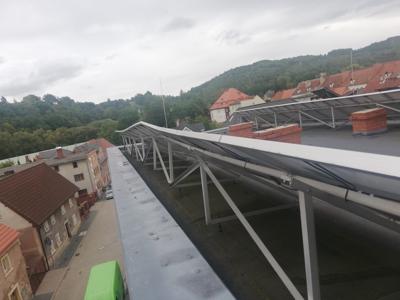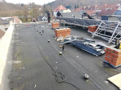 W ostatnich miesiącach przeprowadziliśmy również remont niesprawnej instalacji fotowoltaicznej, której panele zostały poderwane przez mocne podmuchy wiatru a falownik uległ uszkodzoniu na skutek powstałego przepięcia. Instalacja oczekuje na zakończenie prac dekarskich, po których zostanie ponownie przytwierdzona do powierzchni dachu. Dodatkowo uruchomiliśmy też uszkodzoną instalację solarną do ciepłej wody, w której dokonano niezbędnych napraw i wymiany glikolu.