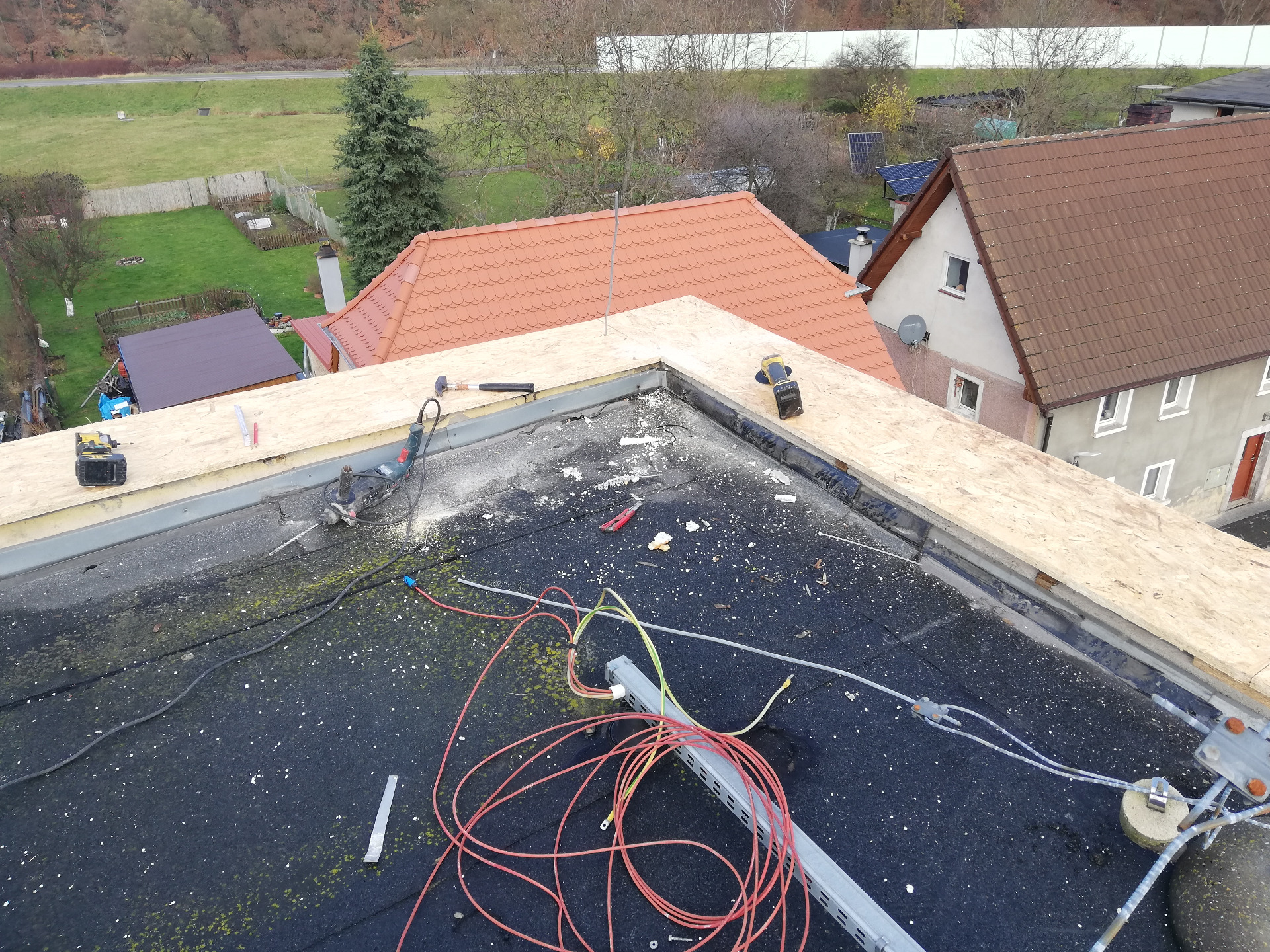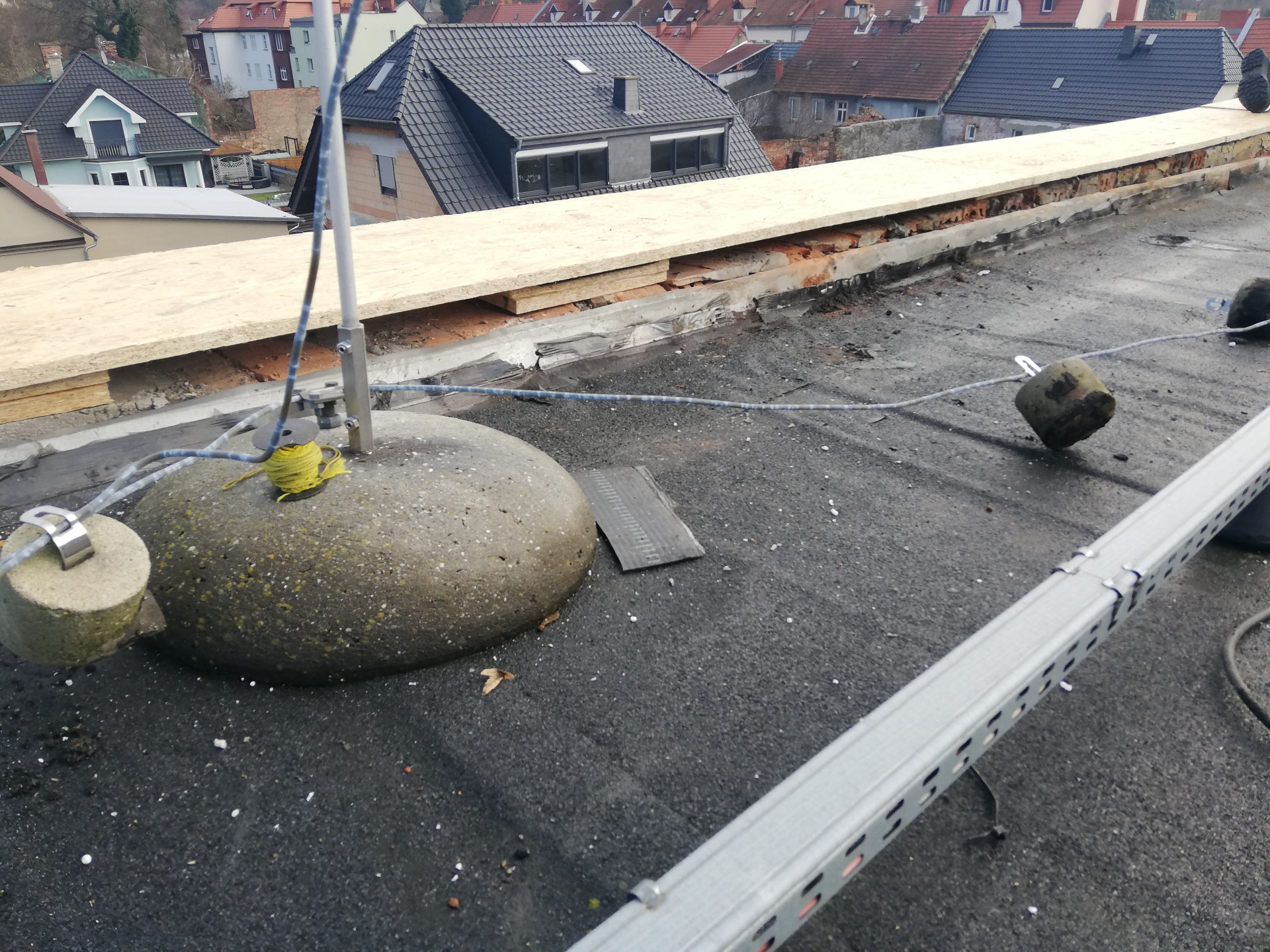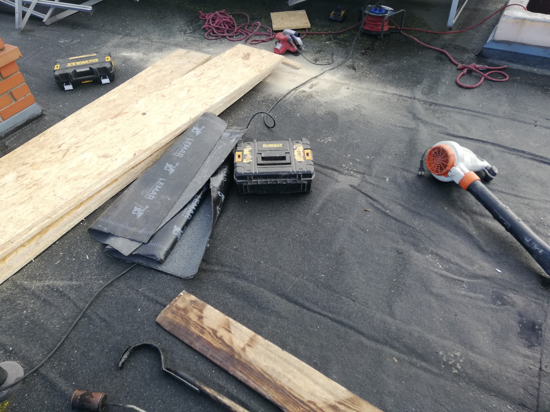 W połowie listopada 2025r. rozpoczęliśmy remont części dachu na budynku tut. ośrodka. Wiele lat postępującej korozji ogniomurów, ubytków papy termozgrzewalnej i obróbek blacharskich, spowodowało przedostawanie się wody do pomieszczeń poniżej. To skutkowało zawilgoceniem ścian oraz obsypywaniem się tynków, co całkowicie spowodowało wyłączenie drugiego piętra z użytkowania. Po zakończeniu prac dekarskich planujemy rozpocząć remonty pokoi i pomieszczeń poniżej, przygotowując je pod zajęcia warsztatowe, sportowe a także nadając im funkcję przestrzeni magazynowych.