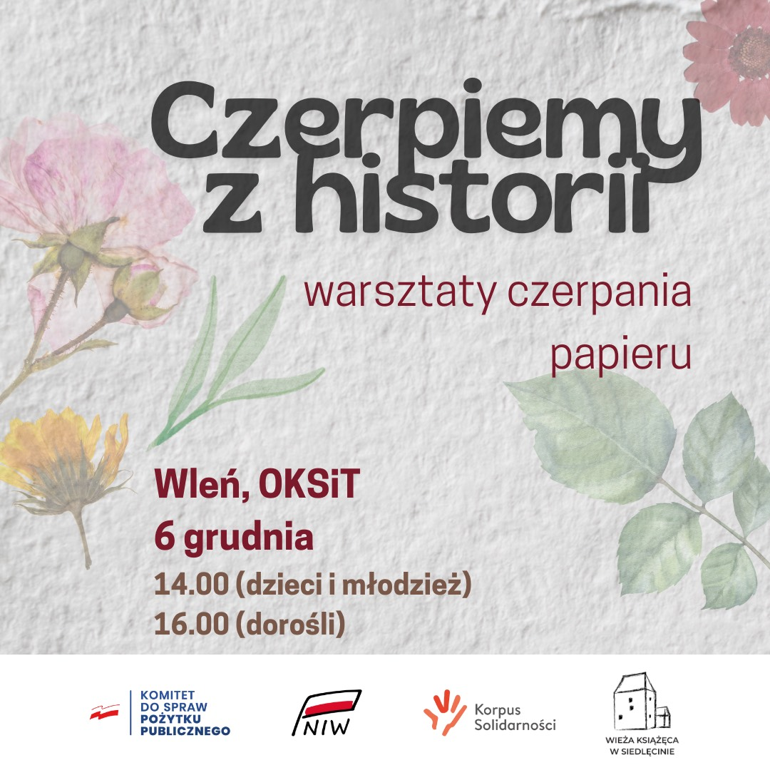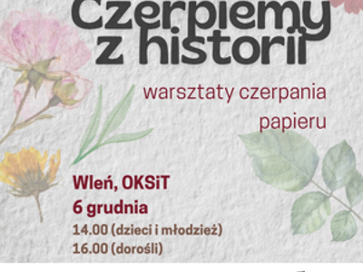 Stwórz własnoręcznie kartkę papieru i wlej w nią odrobinę własnego pomysłu: kwiatów, liści oraz pigmentu — papier przyjmie wszystko. Poznaj tradycyjną technikę czerpania papieru i wykorzystaj makulaturę, by stworzyć swoje własne dzieło - piękne "z i dla natury". Warsztaty odbędą się w sobotę 6 grudnia 2025r. w Ośrodku Kultury, Sportu i Turystyki we Wleniu. Do udziału zapraszamy zarówno młodych jak i dorosłych uczestników. Po twórczych działaniach, najmłodszych rękodzielników zaprosimy na świąteczny seans filmowy w Kinie za Rogiem Jutrzenka.