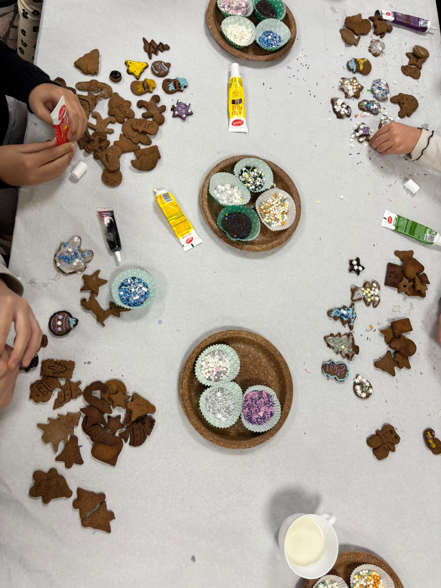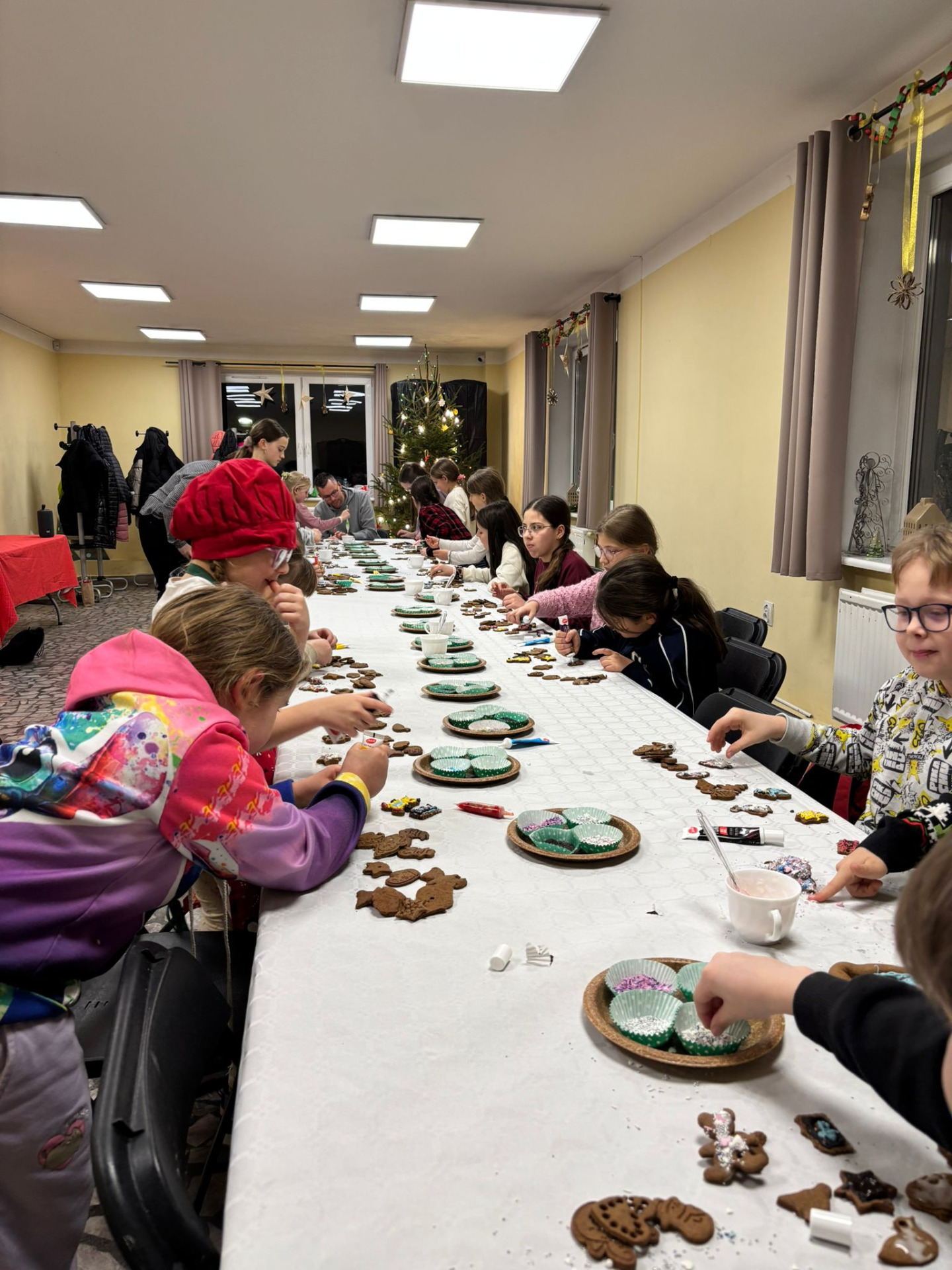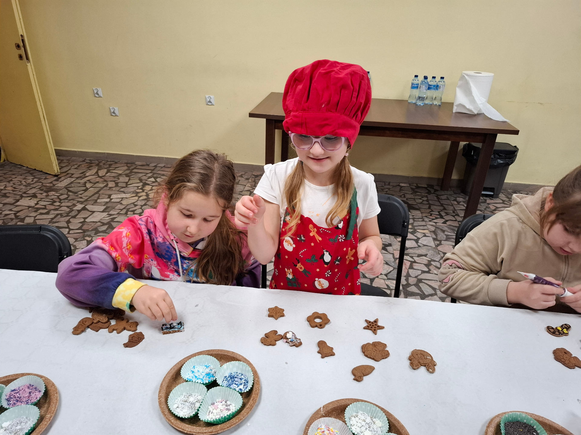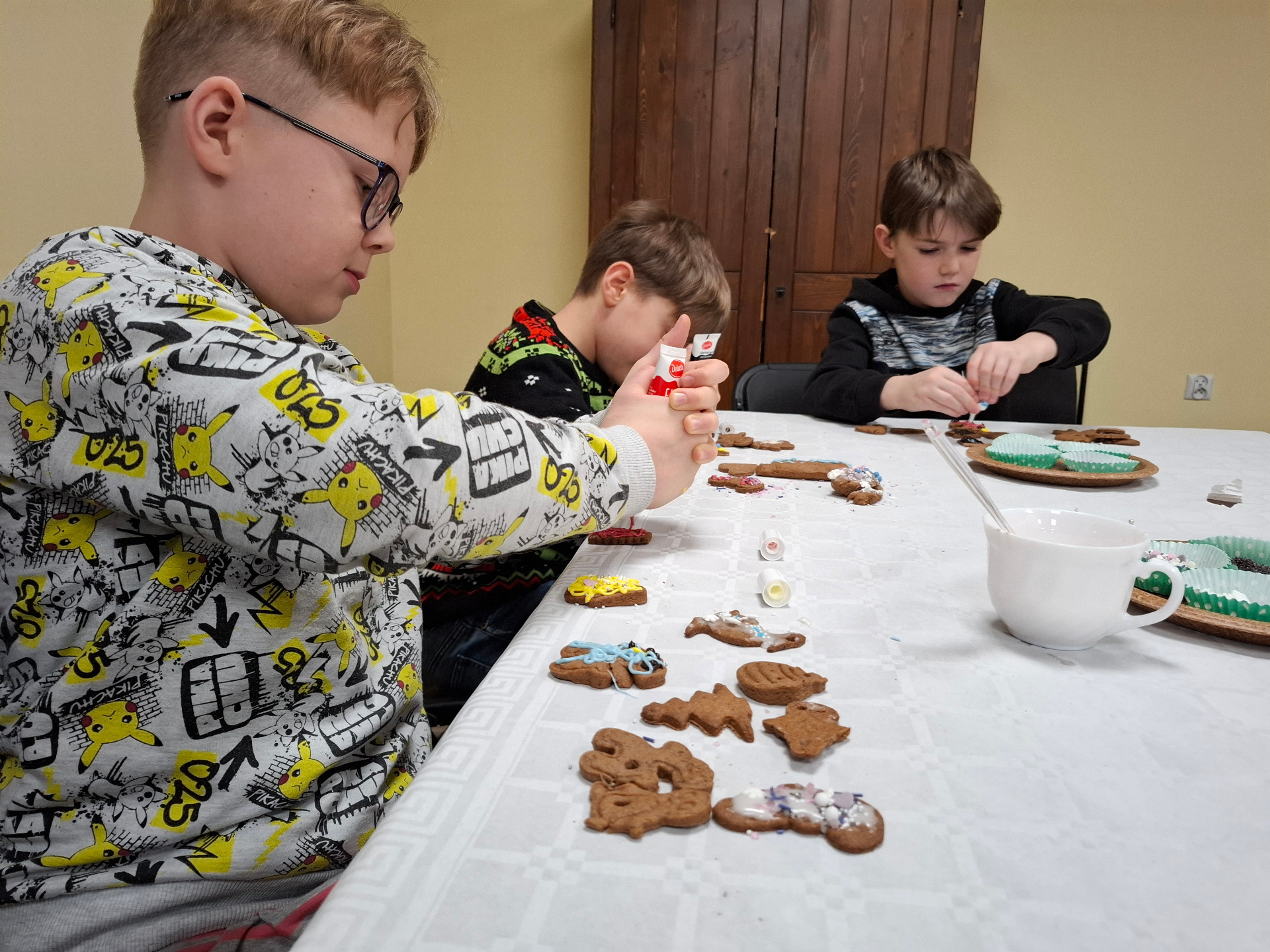 Następnie rozpoczęliśmy najsmaczniejszą część naszego spotkania. Korzystając z różnorodnych materiałów, takich jak kolorowe lukry, pisaki do dekoracji, mak oraz posypki w różnych kształtach i barwach, każdy mógł puścić wodze fantazji i stworzyć unikalne wzory. Każdy piernik był wyjątkowy i odzwierciedlał indywidualną wyobraźnię oraz kreatywność młodych twórców.