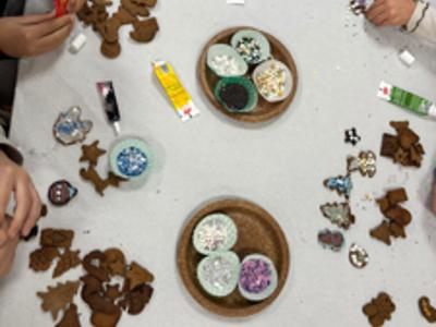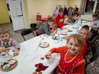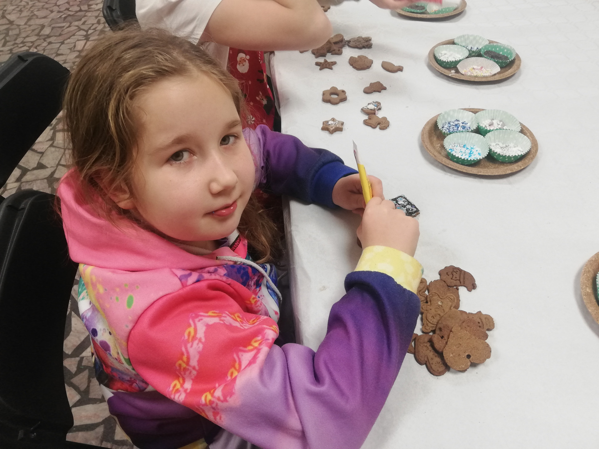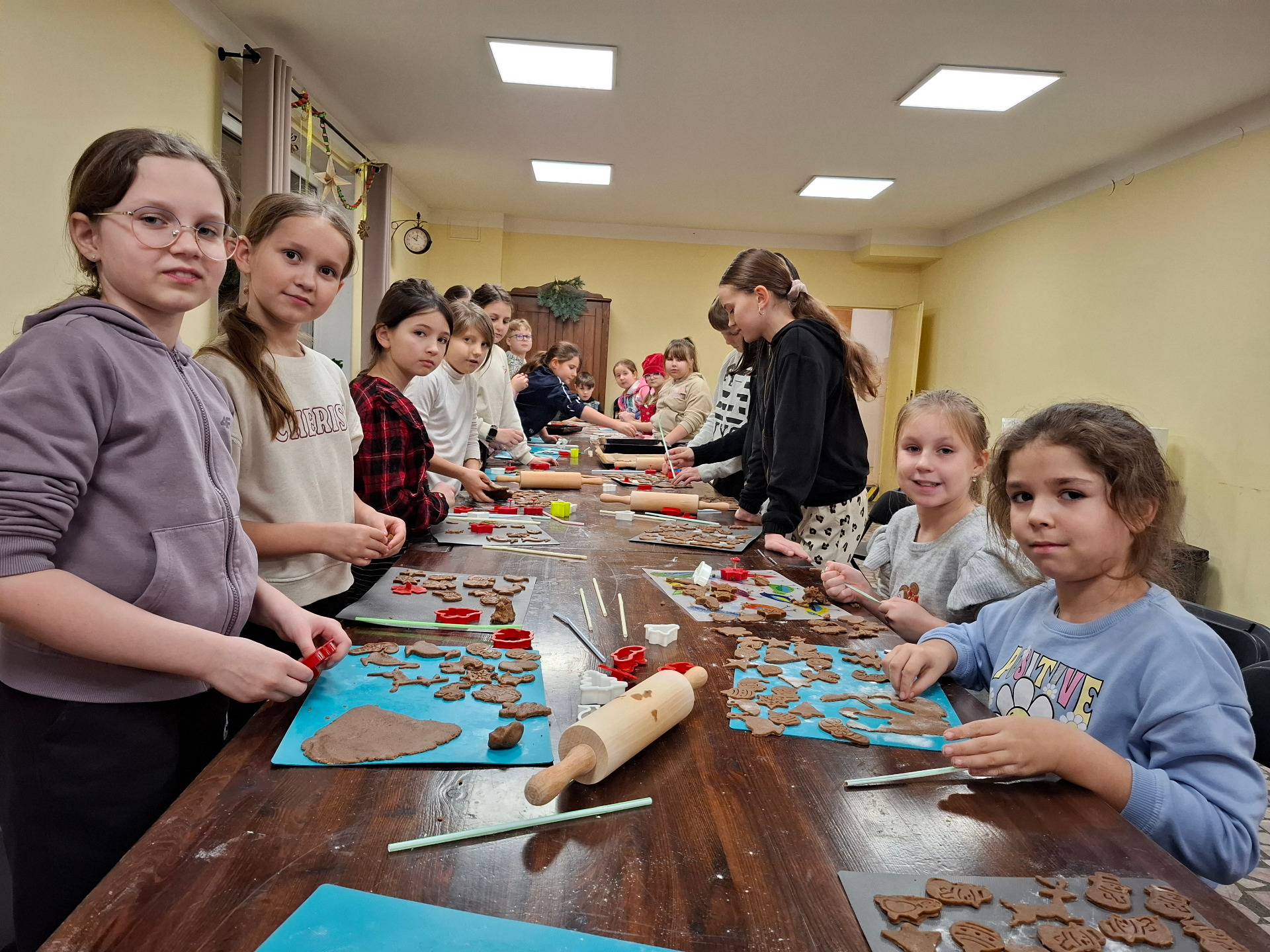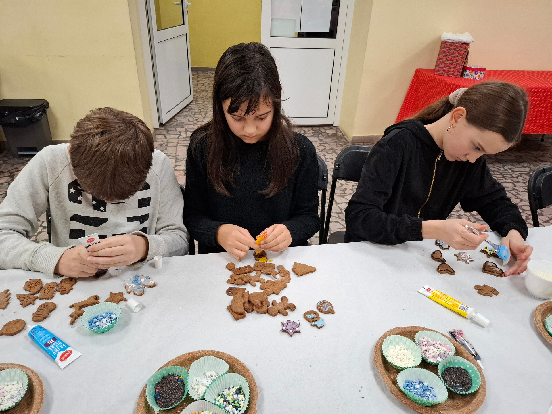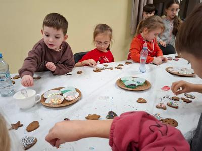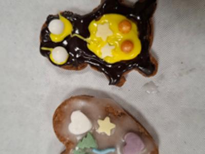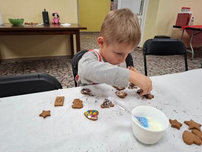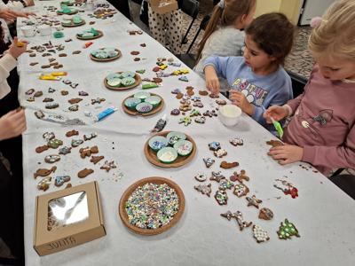 Następnie rozpoczęliśmy najsmaczniejszą część naszego spotkania. Korzystając z różnorodnych materiałów, takich jak kolorowe lukry, pisaki do dekoracji, mak oraz posypki w różnych kształtach i barwach, każdy mógł puścić wodze fantazji i stworzyć unikalne wzory. Każdy piernik był wyjątkowy i odzwierciedlał indywidualną wyobraźnię oraz kreatywność młodych twórców.