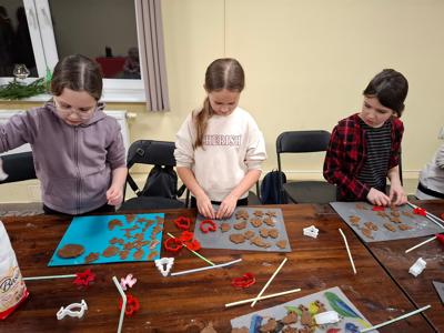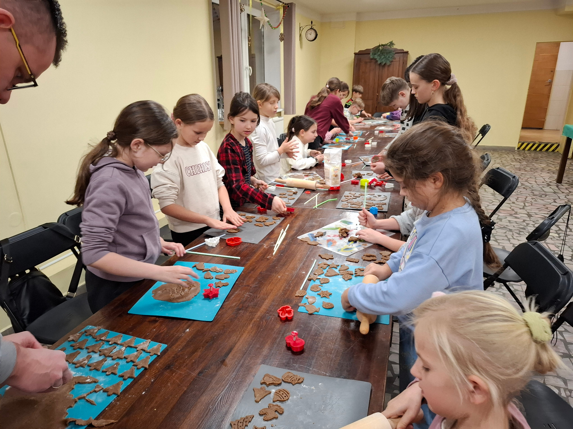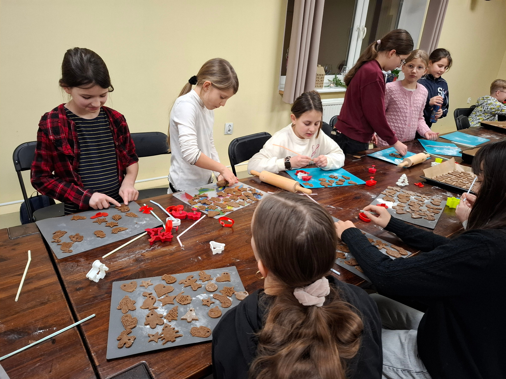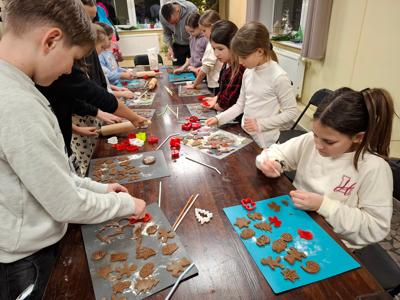 Okazuje się, że entuzjastów wspólnego „piernikowania” we Wleniu i okolicach jest całkiem sporo. Udowodniły to nasze dwudniowe warsztaty, które w czwartek i piątek (18 i 19 grudnia) zgromadziły niemal czterdziestu uczestników. Ze względu na duże zainteresowanie wydarzeniem, zdecydowaliśmy się uruchomić dodatkowy termin. Korzenny zapach unosił się po całym domu kultury. Dzieci i młodzież z zapałem wykrawała z ciasta świąteczne kształty a potem ozdabiała je wykorzystując do tego rozmaite, słodkie dekoracje.