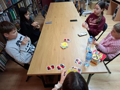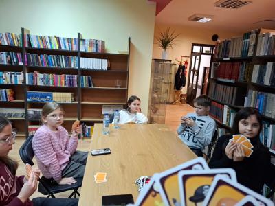 Nie zabrakło czasu na zabawę. Po zajęciach rywalizowaliśmy w Dobble i Duo oraz graliśmy w gry ruchowe w sali widowiskowej naszego Ośrodka.