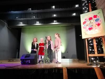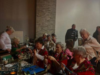 Kolejną częścią naszych obchodów był program artystyczny dzieci uczęszczających do Pracowni Artystycznej „Gołębnik”, działającej w naszym domu kultury. W trakcie występu usłyszeliśmy radosne piosenki takie jak „Wesoła Gromadka dla Babci i Dziadka” oraz krótkie wierszyki wyrażające miłość i wdzięczność dla swoich rodzin. Młodzi artyści w ten sposób przekazali ze sceny najserdeczniejsze życzenia swoim Babciom i Dziadkom. Ostatnim, akcentem przedstawienia było przekazanie przez dzieci ręcznie przygotowanych naszyjników. Obdarowane Panie nie kryły wzruszenia. Było to piękne podsumowanie naszego wspólnego świętowania.